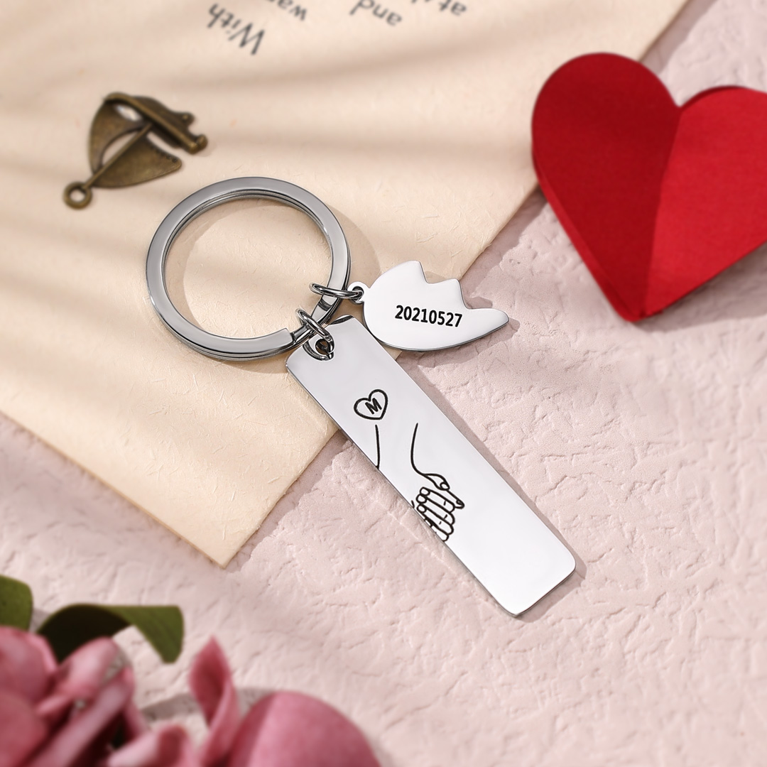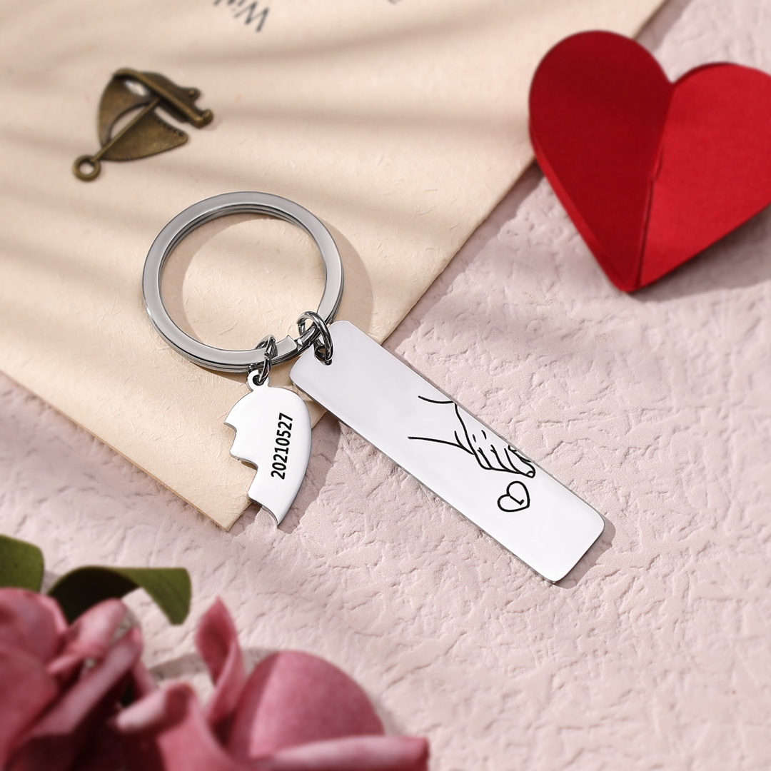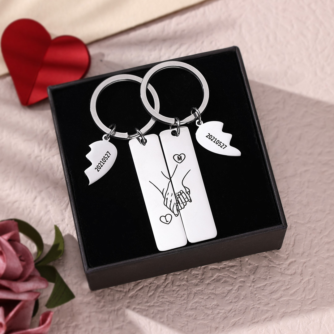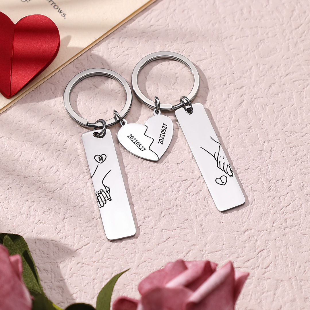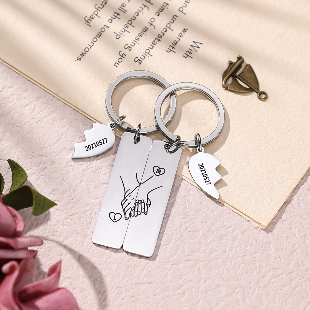 Hand in Hand Couple Keychain Set Personalized Date Initial Heart Matching Couple Gifts