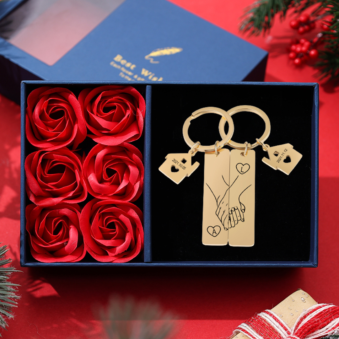This Couple Keychain Set engraved with a loving message is a gift idea for your loved one. It conveys the love of the heart to each other. One piece is not complete without the other!