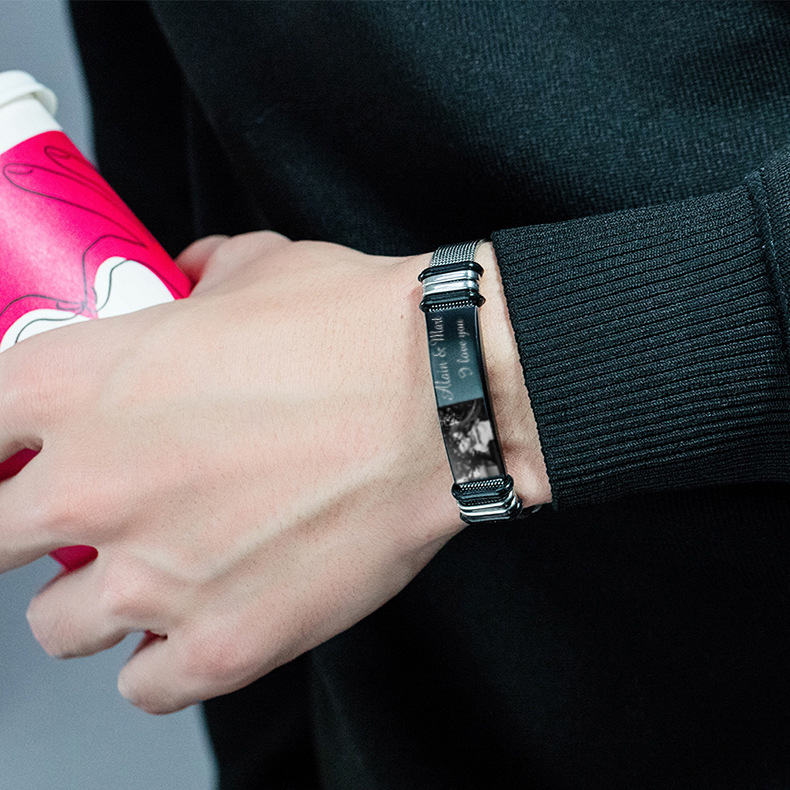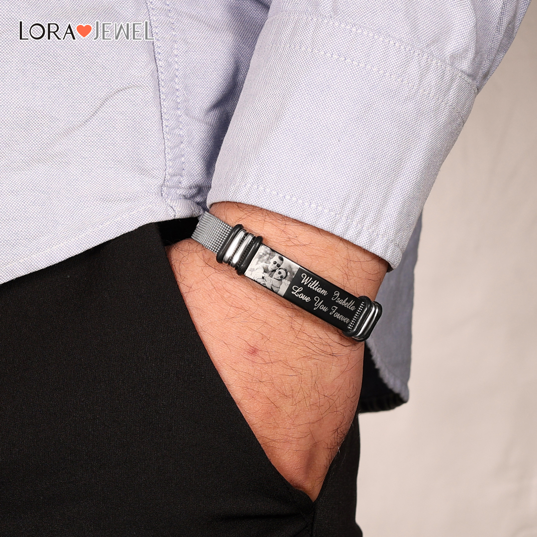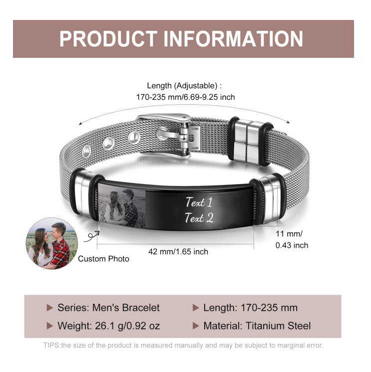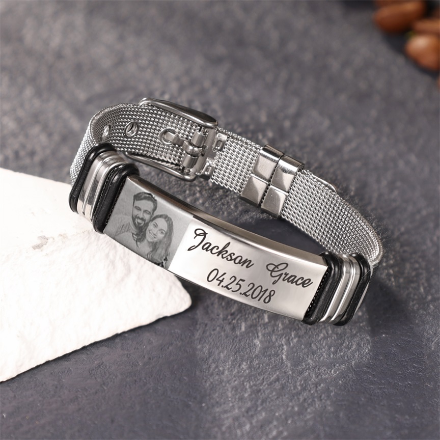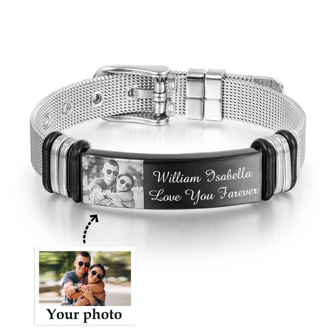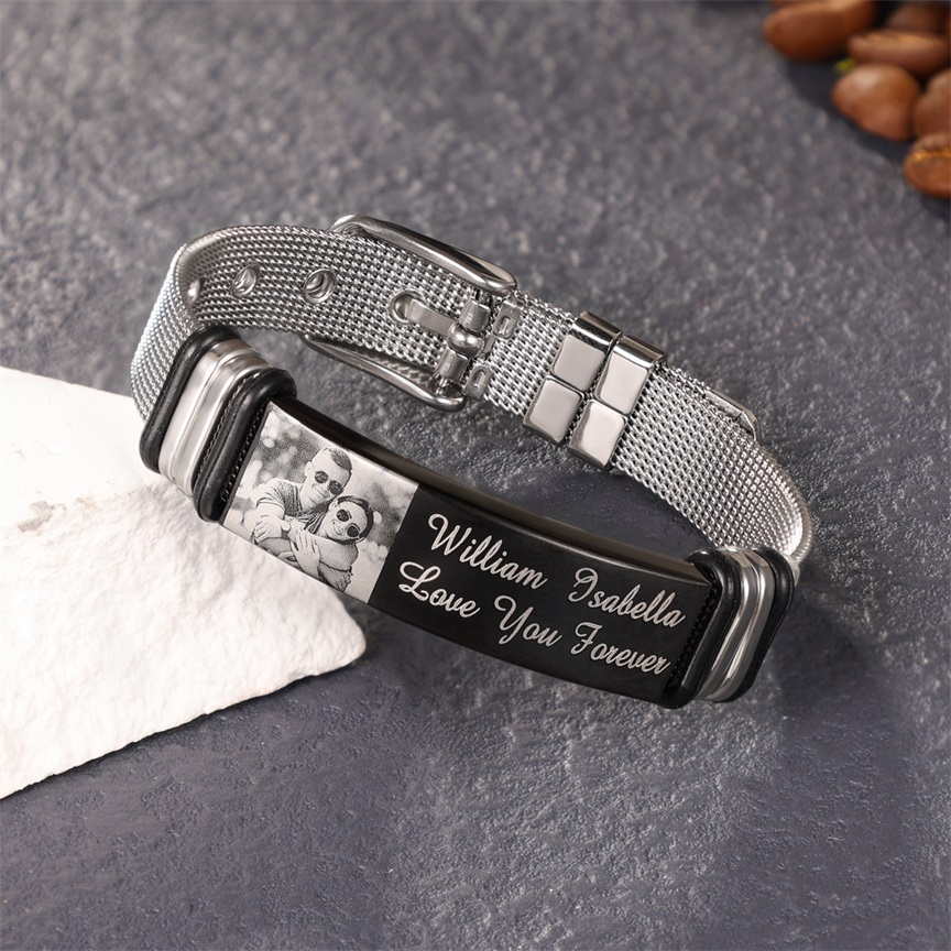 Surprise your loved one with this ID bracelet. The men's bracelet can be personalized with your own unique message & Photo. Popular personalizations include family names and special dates. It would be a meaningful gift for your dad, husband, grandpa, mother, wife which can treasure forever.