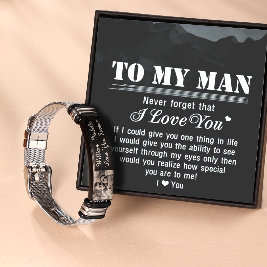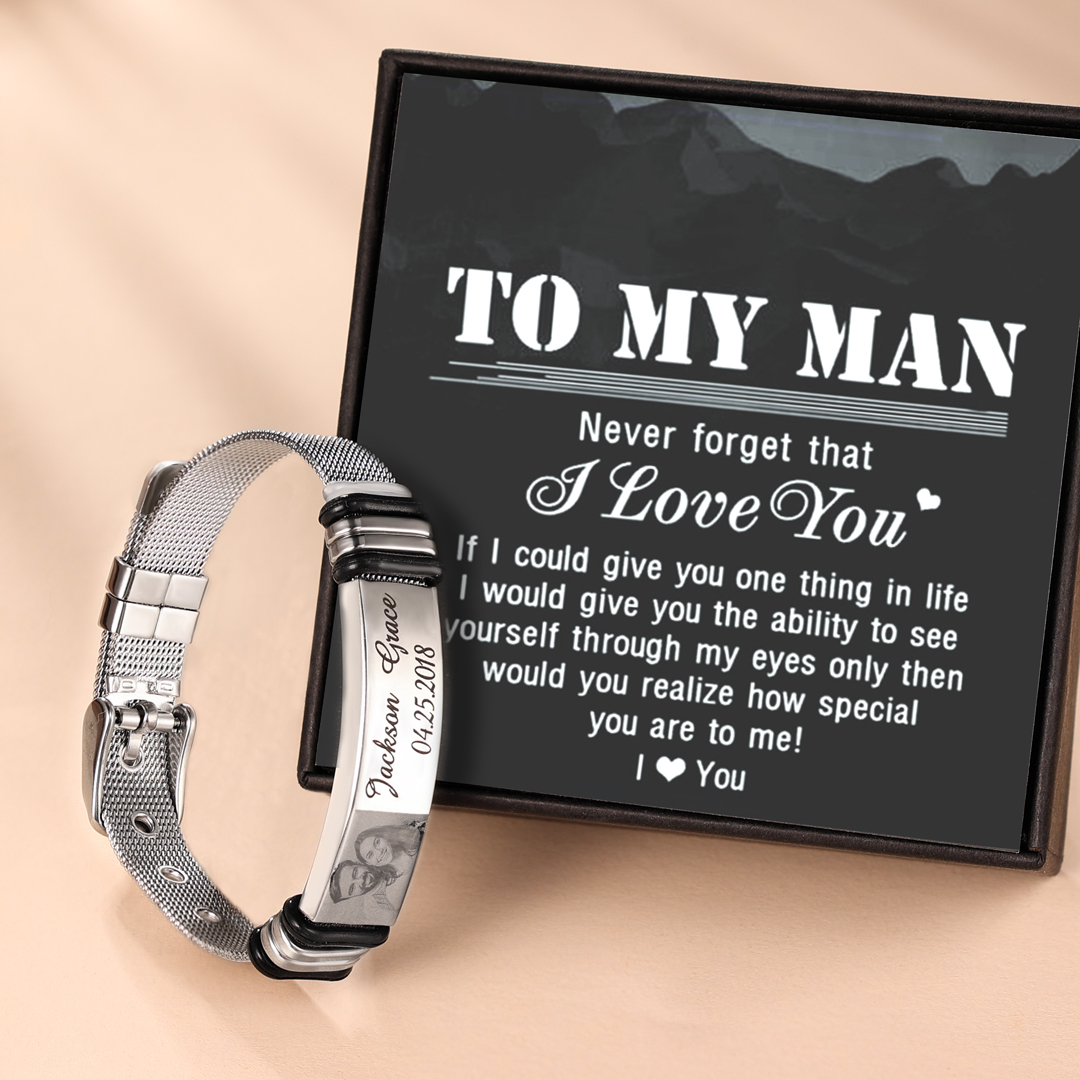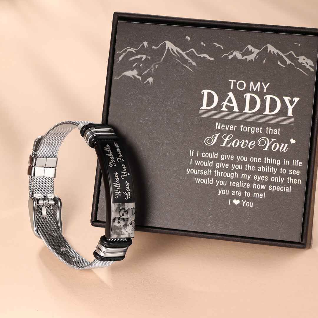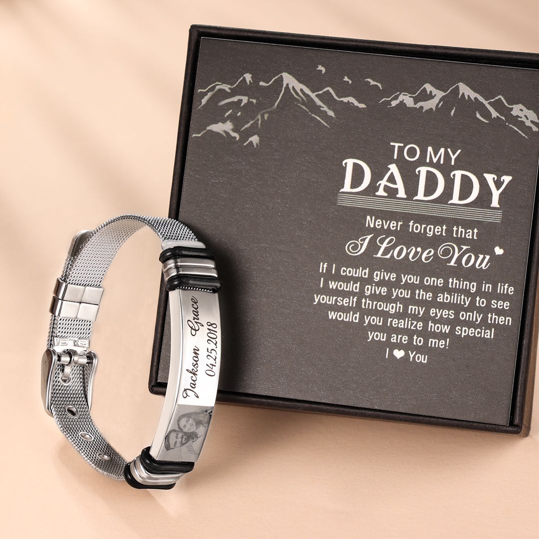 Surprise your loved one with this ID bracelet. The men's bracelet can be personalized with your own unique message & Photo. Popular personalizations include family names and special dates. It would be a meaningful gift for your dad, husband, grandpa, mother, wife which can treasure forever.