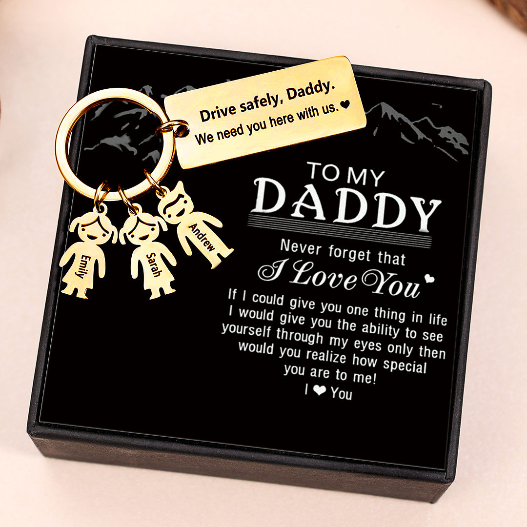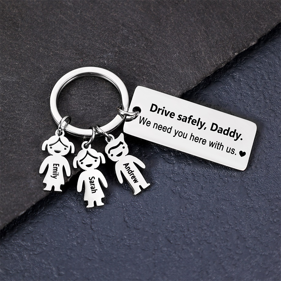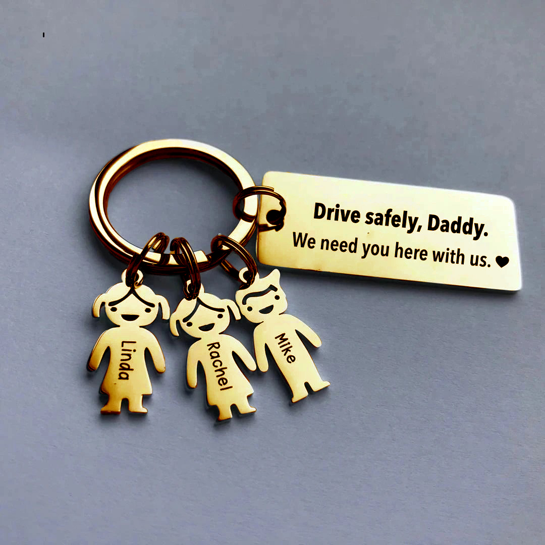 To My Dad 3 Kid Charms Keychain "Drive Safely, Daddy"