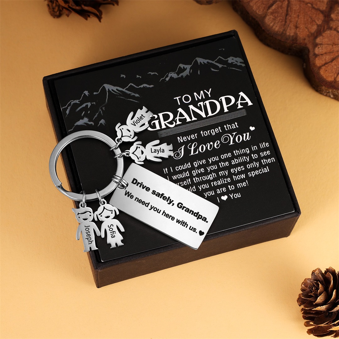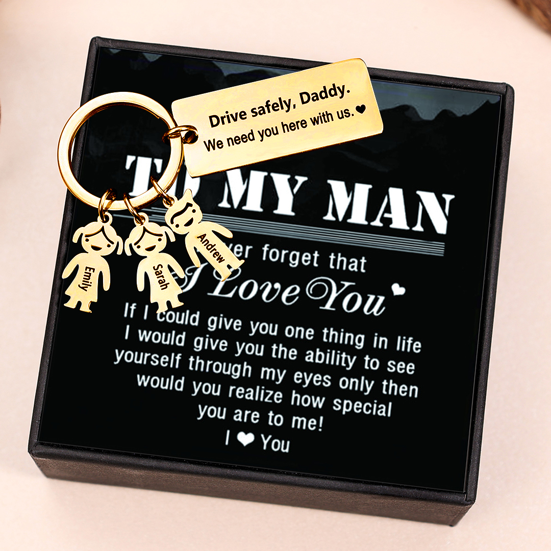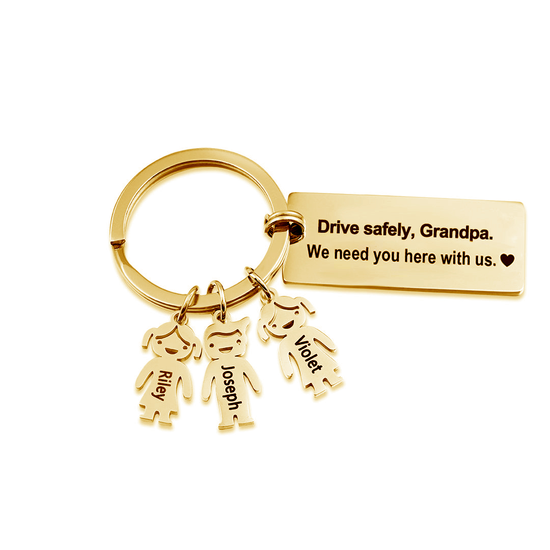 To My Dad 3 Kid Charms Keychain "Drive Safely, Daddy"